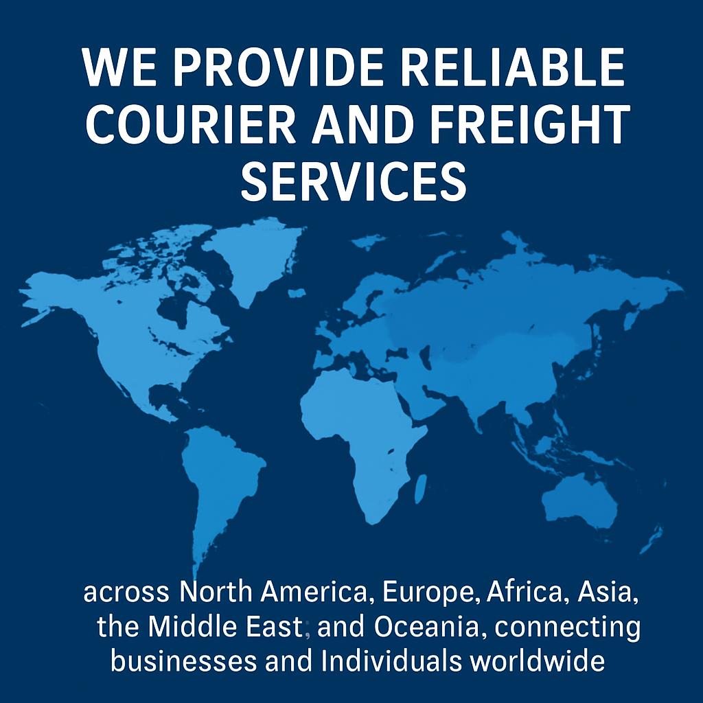 We provide reliable courier and freight services across North America, Europe, Africa, Asia, the Middle East, and Oceania, connecting businesses and individuals worldwide.